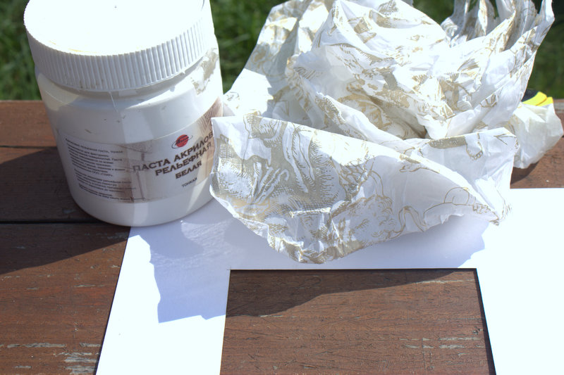 .....нам понадобится заготовка рамочки, вырезанная из бумаги, бумага тишью и акриловый грунт (акриловая краска - она сохнет быстрее, надо быть проворнее)