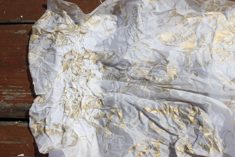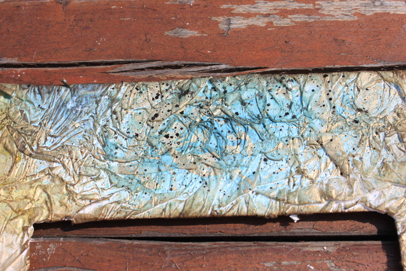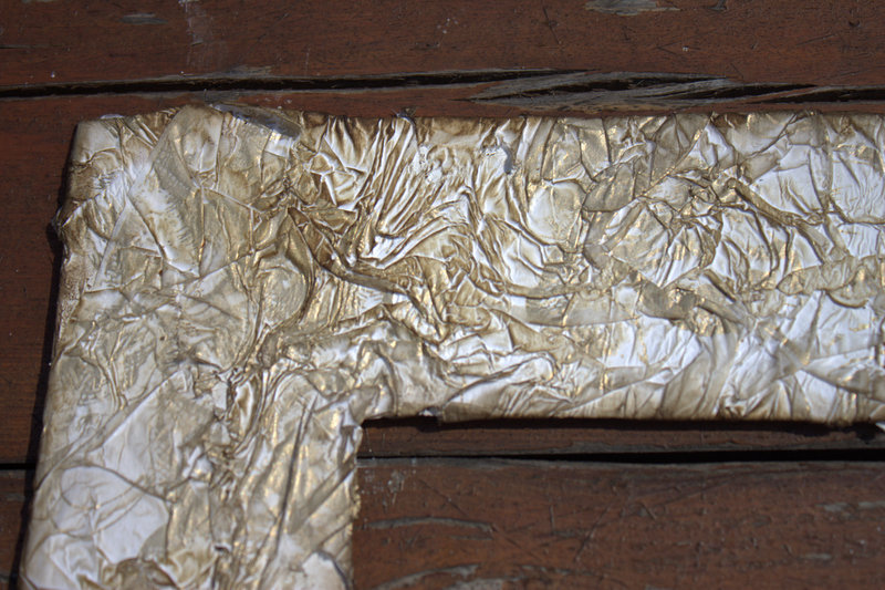 На заготовку рамочки накладываем слой акрилового грунта. Не стоит покрывать грунтом сразу всю поверхность рамочки (будет неудобно), сверху кладем бумагу тишью и кончиками пальцев сморщиваем ее, чтоб получились складочки. Так шаг за шагом обрабатываем всю рамочку.