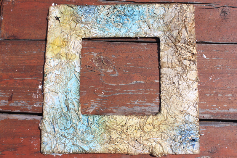 Концы бумаги заворачиваем на тыльную сторону рамочки и закрепляем либо скотчем либо акриловым грунтом.
