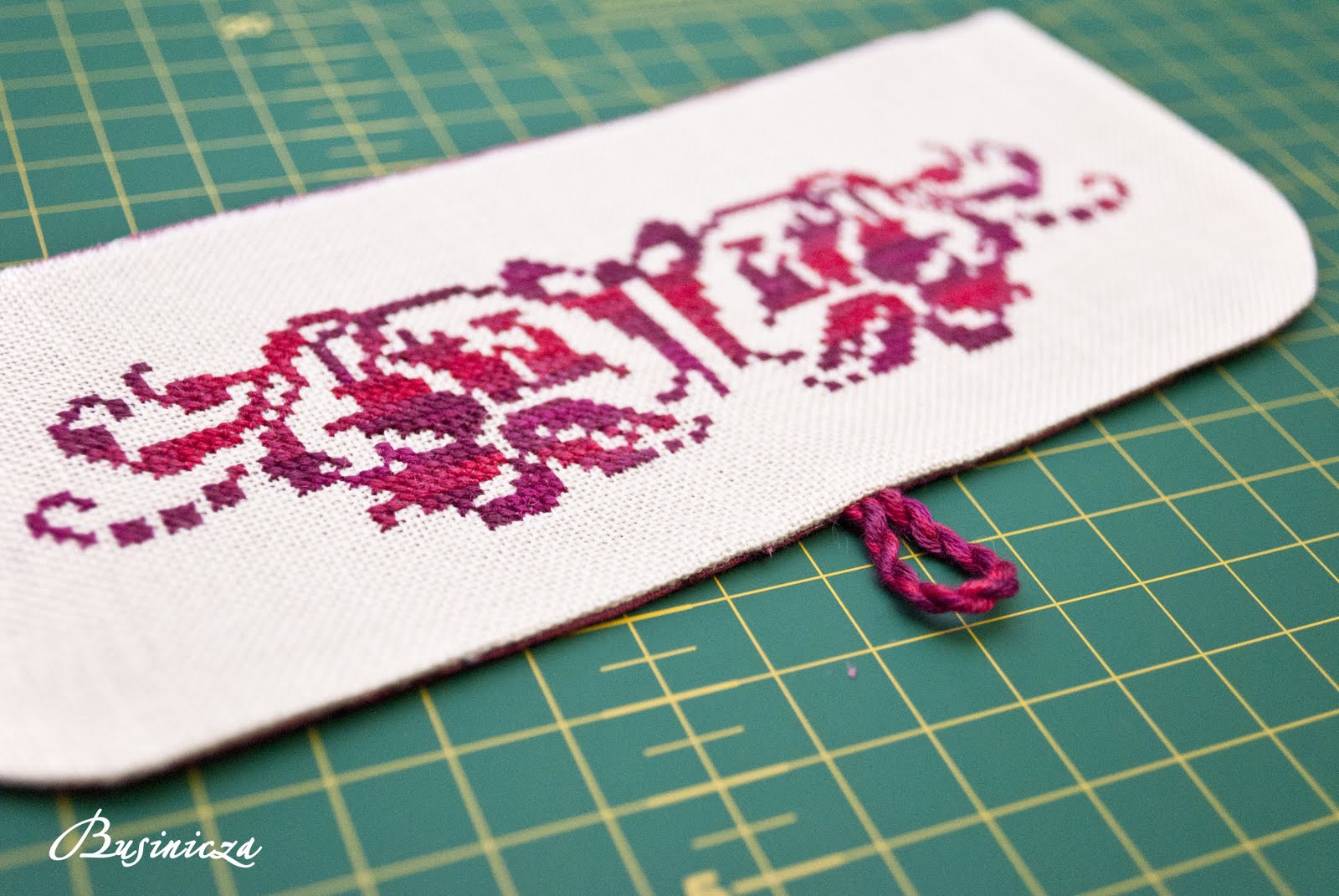 Изнаночную сторону вышивки уплотнить дублерином, который придает хорошую форму таким небольшым вещам. Прогладить на максимальной температуре утюга через ткань, чтобы не испортить подошву утюга.