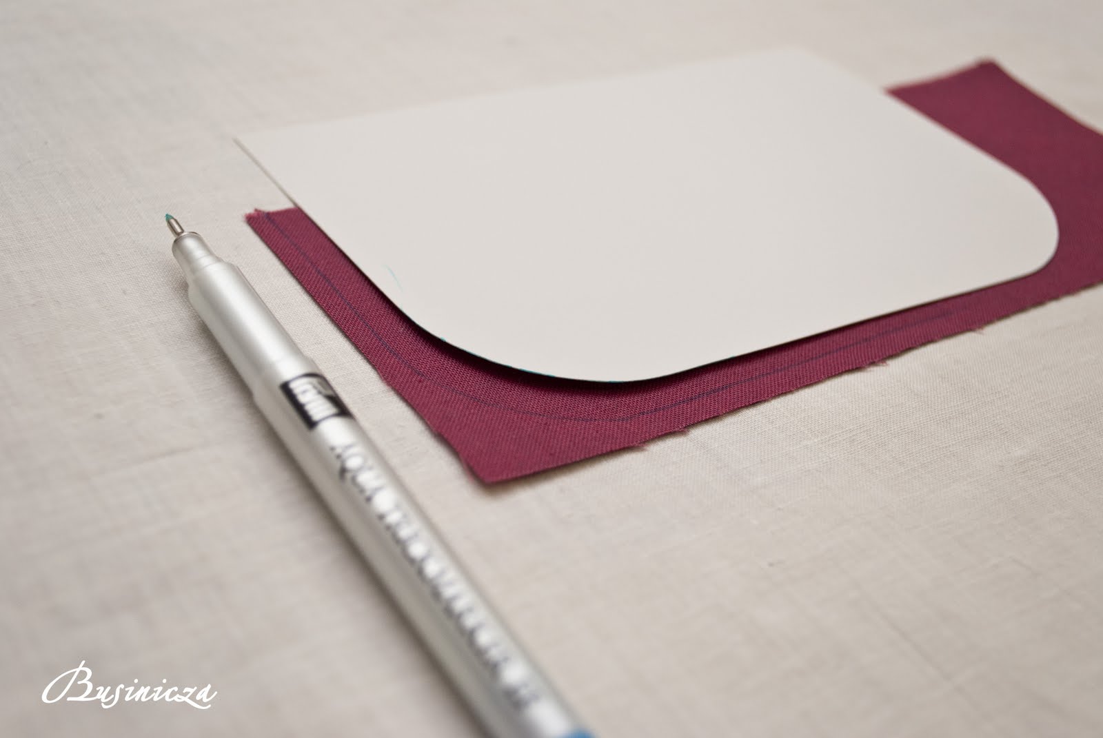 У меня есть специальная заготовка для выкраивания клапана, сделать её просто: на прямоугольном листе картона скруглить углы по любой круглой вещи (у меня это тарелка). На ткани прочертить скруглённые углы (я пользуюсь водосмываемым маркером фирмы Prim).