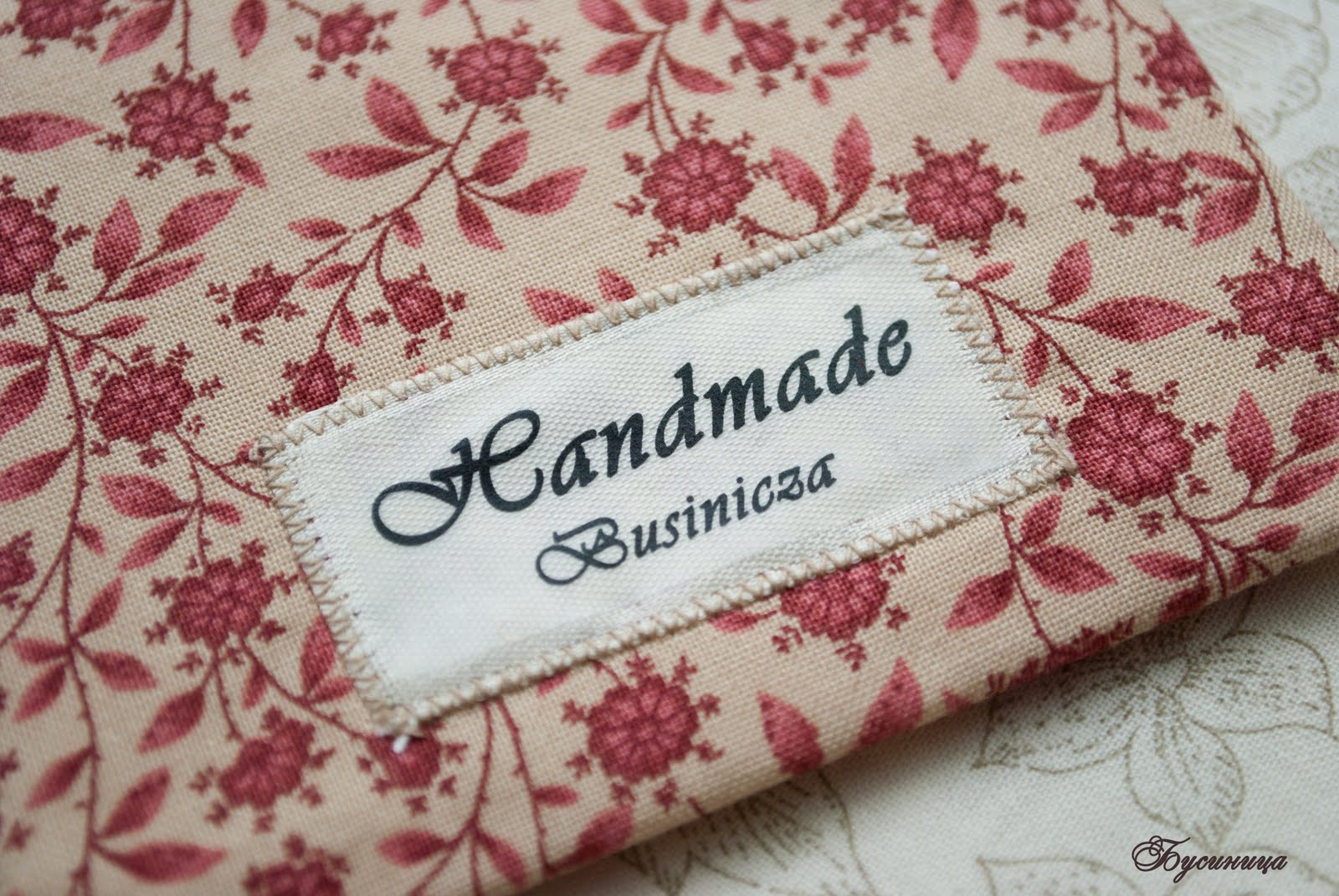 На этом этапе самое время пришить ярлычок или любую другую украшалочку :) Сначала я подклеила его клеевой паутинкой, чтобы не съезжал при пришивании. Потом прошила на машинке.