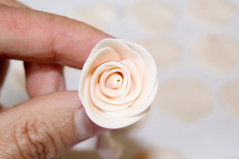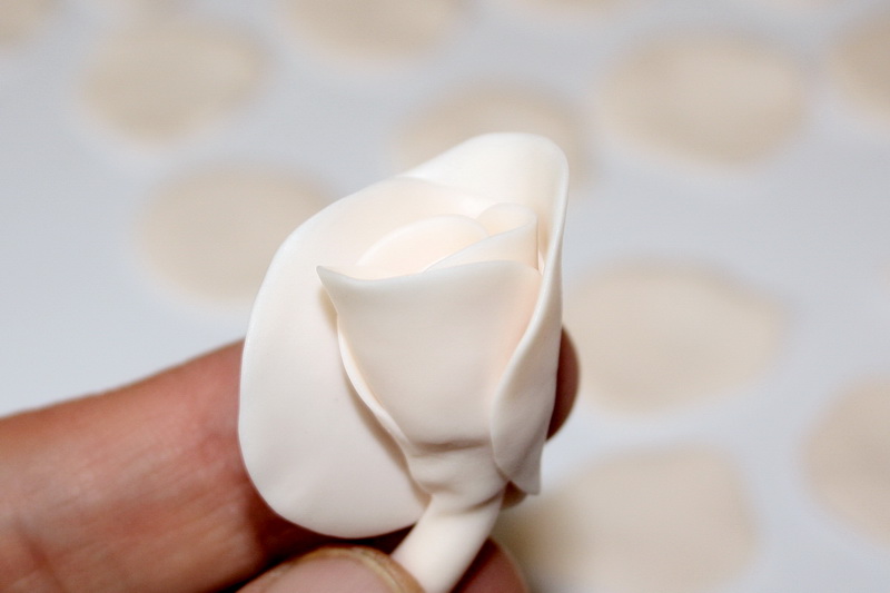 Пальцами сформируйте лепесток, но не слишком тонкий. Лепестки на первой розе я сделала очень тонкие и при обжиге они «опали» - роза потеряла форму.