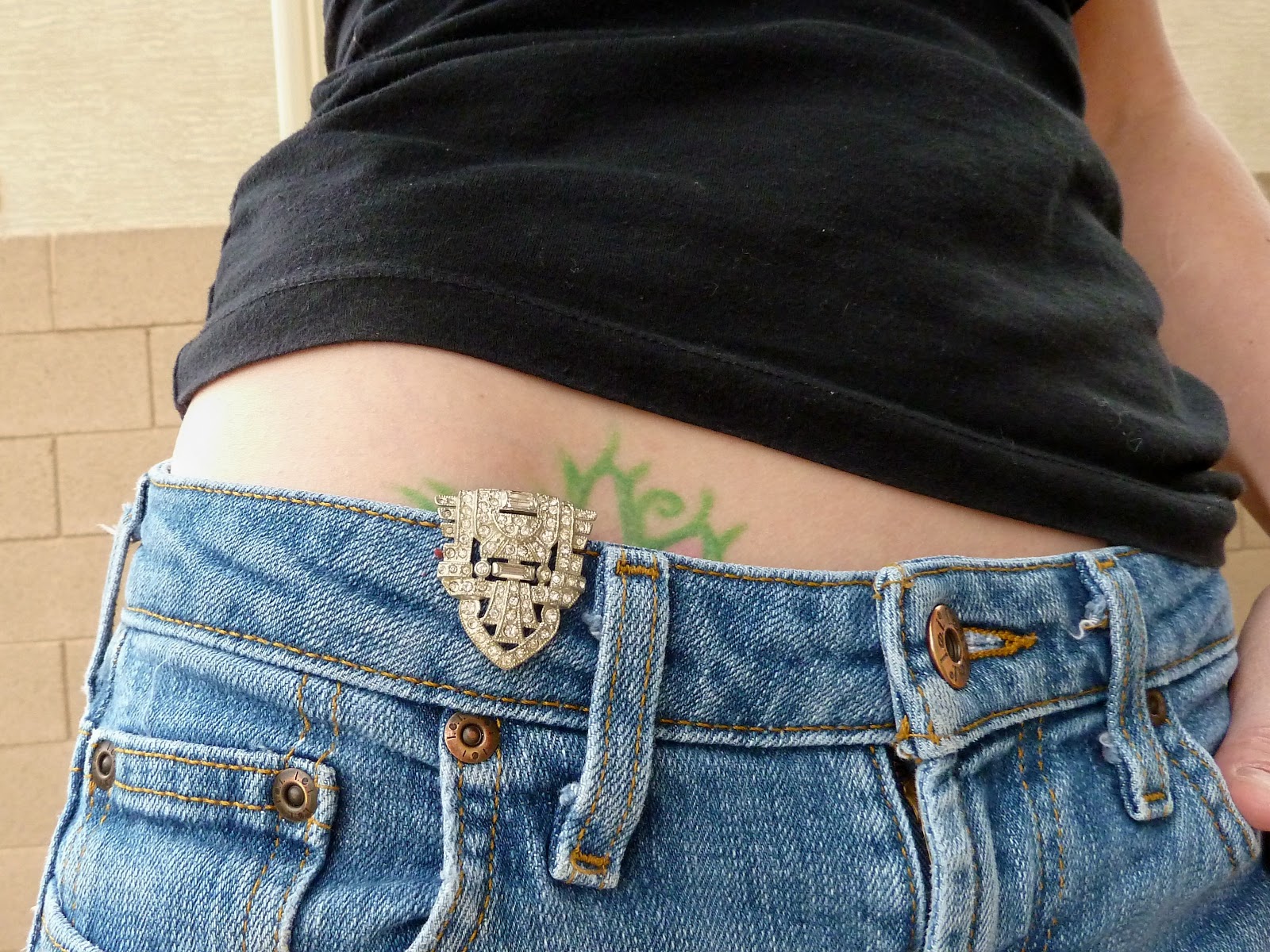 Очень редкое и универсальное украшение – дресс-клип. Универсальным оно является потому, что в отличии от броши им можно украсить и костюм, и рубашку, и ремень, и сумочку, при том, что вы никак не повреждаете ткань.