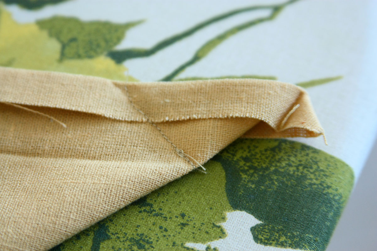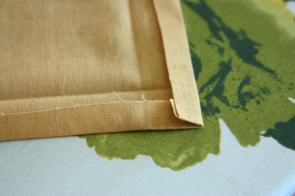 После этого загибаем уголки на изнанку (как на фото) для того, чтобы получить линию сгиба для ровной строчки: