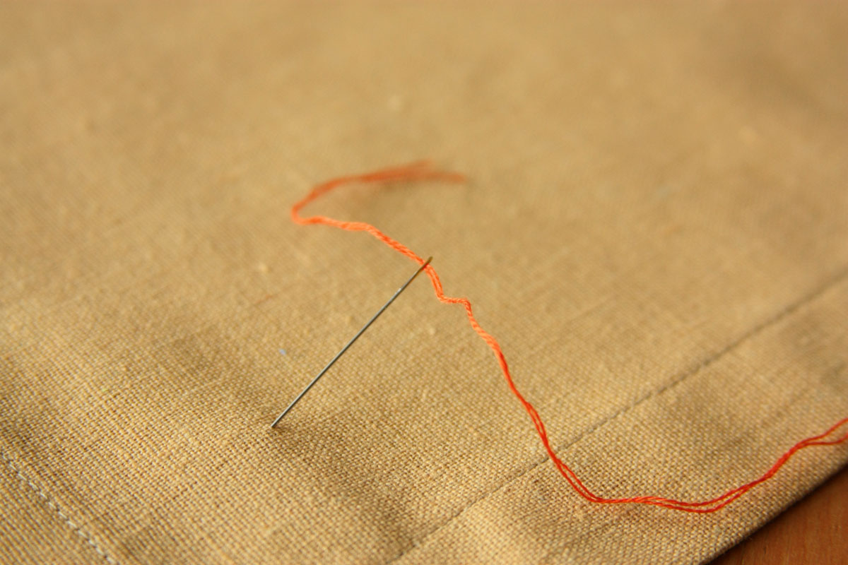 И так: со всеми четырьмя уголками. Прокладываем строчку: