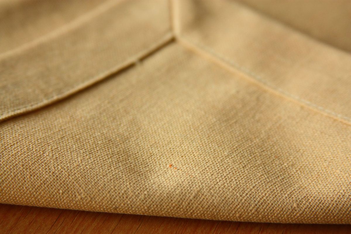 Нам понадобится лен, мулине зеленого цвета, пуговицы мелкие и средние .Для начала раскроим салфетки.