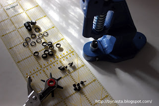 Люверсы у меня 8 мм, хольнитены 9 мм. Пробойник только на маленькие дырочки. Большие вырезаю ножницами