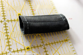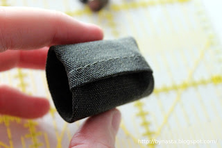 Но сначала мастерю что-то типа фиксатора для шнура. Это кусочек, сшитый в тубу, с застроченными краями