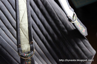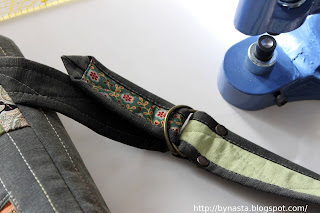 Подошла очередь ручки и шлеек. Пришиваю их ровненько под клапаном, оставляя 3 см запаса