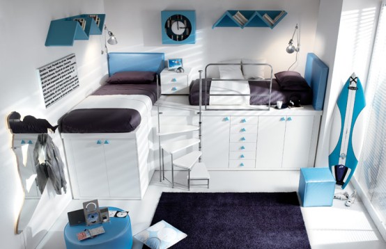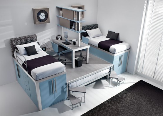 Предлагаю подборку различных вариантов компактного размещения мебели, как для одного, так и двух и более детей. Больше всего представленные варианты подходят для подростков.