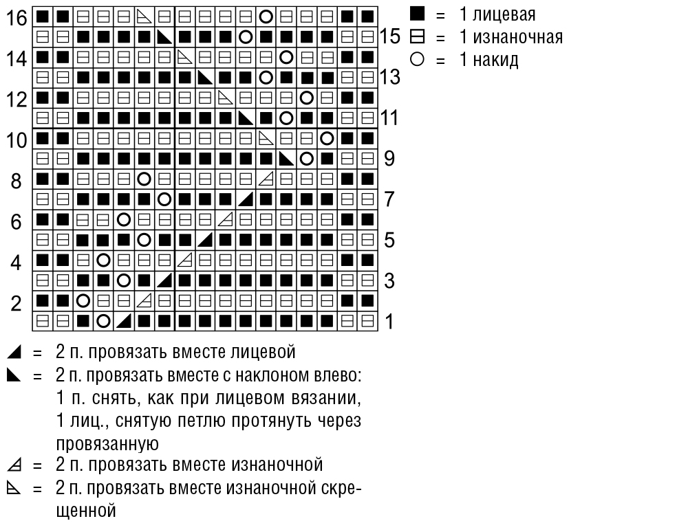 Вязать по приведенной схеме. Раппорт = 17 п. В высоту повторять с 1-го по 16-й р.