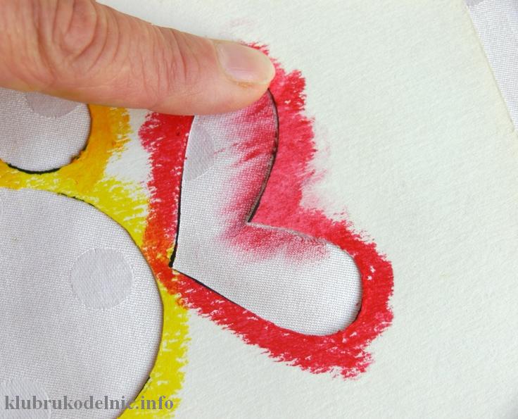 6. Один вырез на шаблоне можно раскрашивать в несколько цветов. Смешением цветов достигаются красивые комбинации. Следует помнить, что каждый цвет стирается отдельным чистым пальцем, поэтому руки нужно часто мыть. Если все же запачкается ткань, место очистить мыльной тряпочкой.