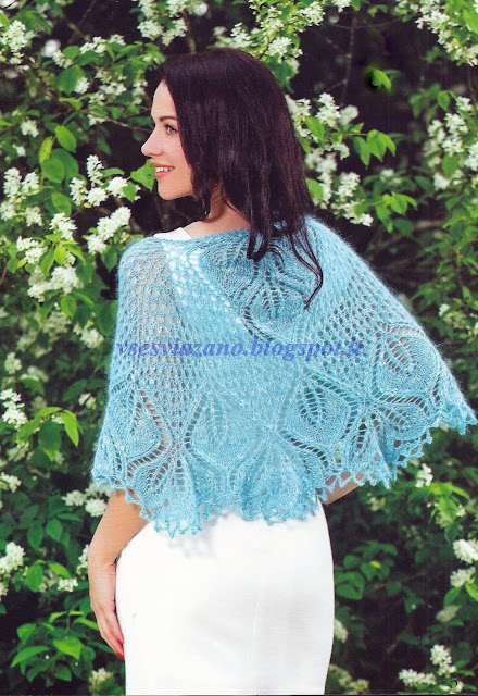 ROSOMAHA12 Оригинальное сообщениеГолубая нарядная шаль спицами