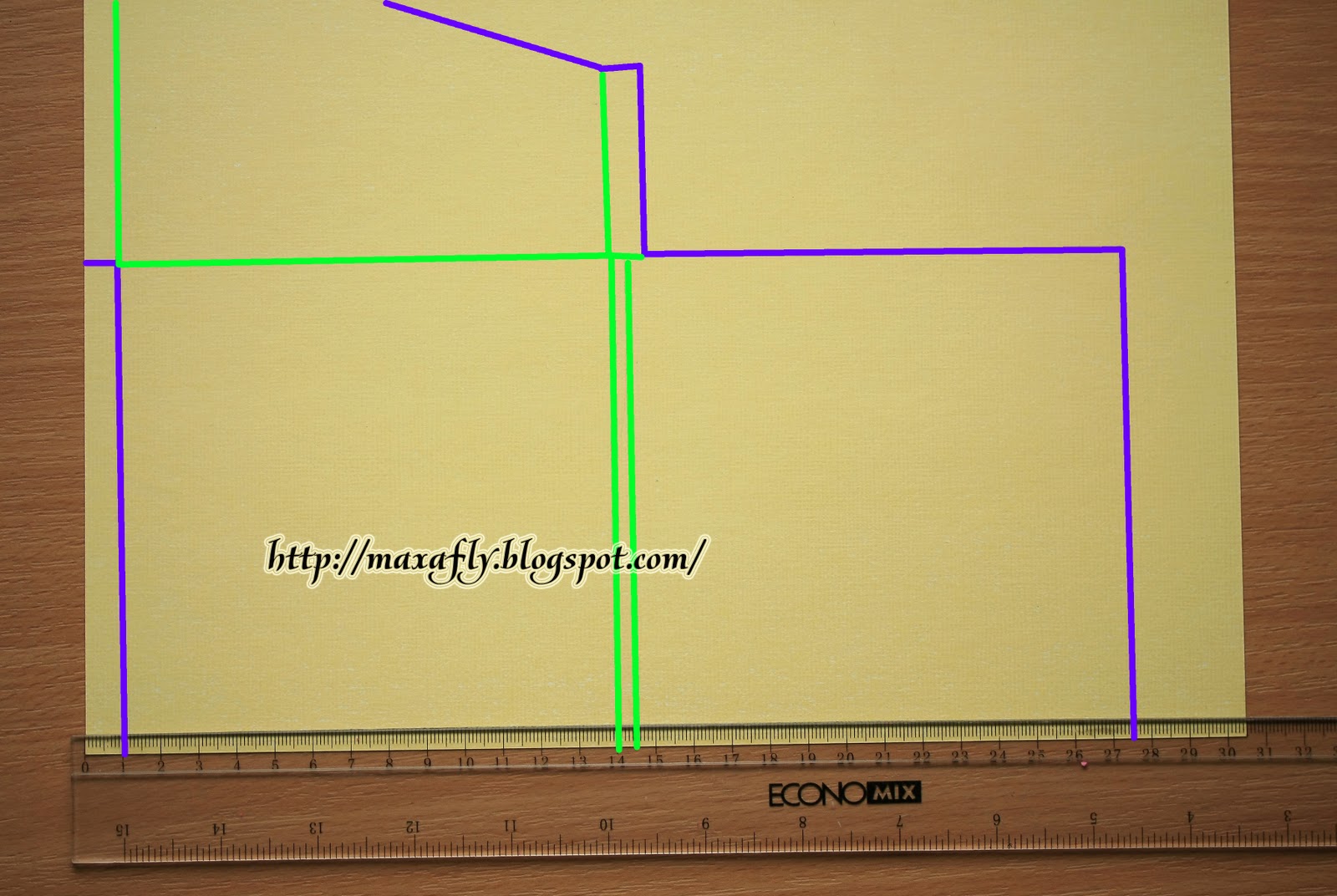 3. Теперь надо вырезать и согнуть по намеченным линиям (синий - отрезать, зеленый - согнуть):