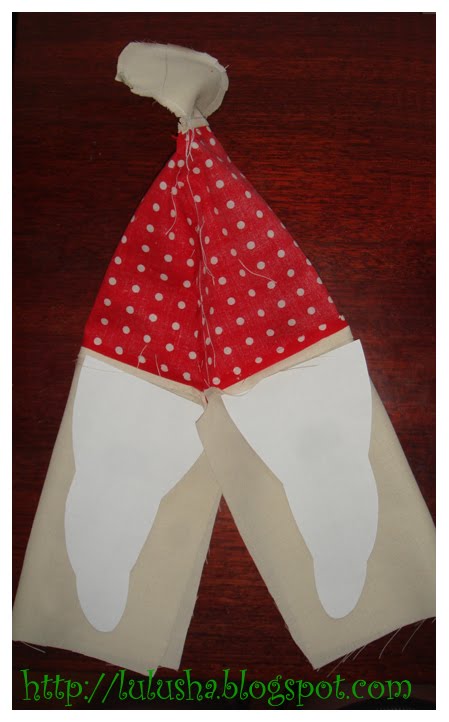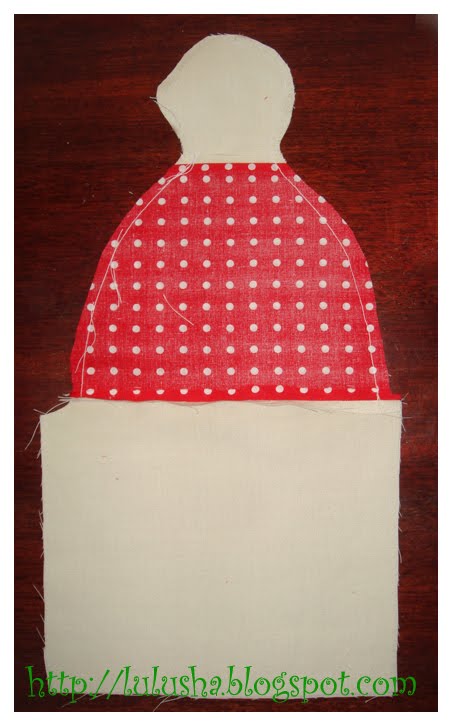 Сначала согласно выкройке сшиваем 3 лоскута горизонтально, затем на верхних двух прострачиваем профиль толстушки - голова и туловище, оставляя место для выворачивания - на спине