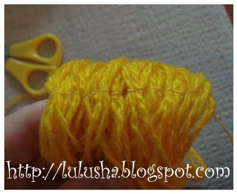 Теперь займемся прической. Определяемся с пряжей и длиной волос. Я решила своей толстушке купальщице очень длинные волосы не делать. Ширины ладони достаточно. Наматываем пряжу на руку.