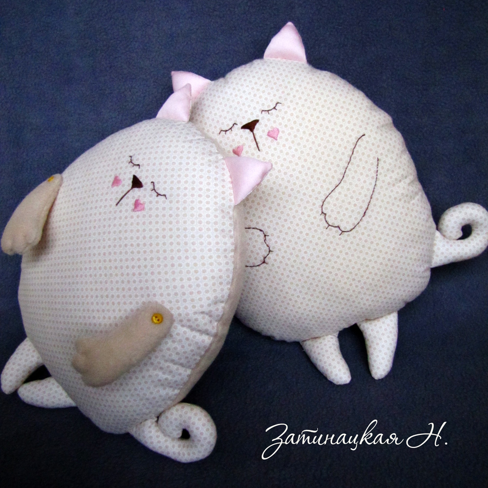 Сегодня я покажу вам мастер класс по пошиву вот такого очаровательного котенка-"сплюшки", подушки :).