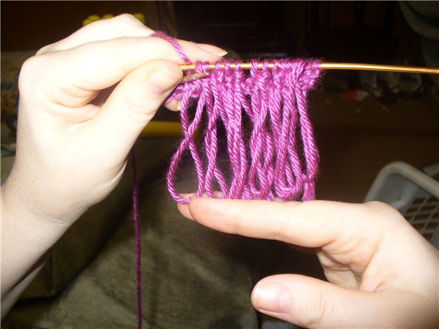 На фото я как раз провязываю это (уже петлю вытянула ''на себя''):