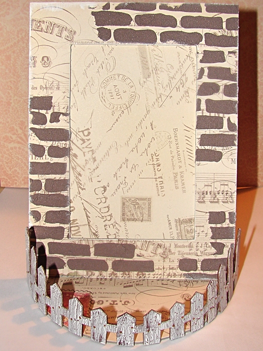 С помощью бумажных уголков, приклеиваем забор к подставке.