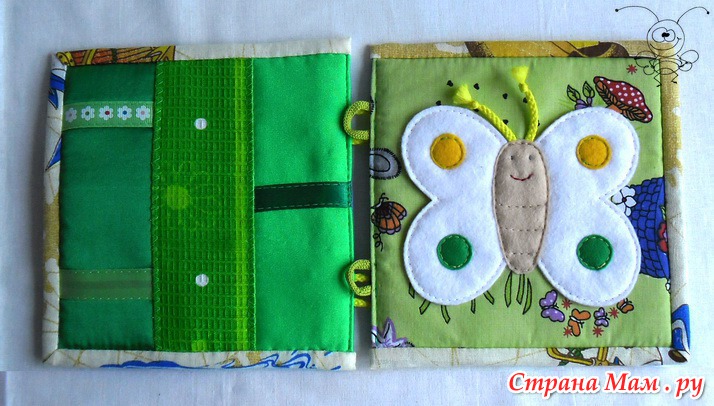 Третий разворот: дергаем бабочку за усики, считаем пятнышки. Крылышки отгибаются и шуршат.