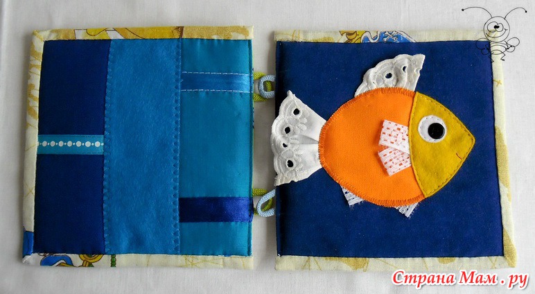 Четвертый разворот: рыбка - плавнички сделаны из двух разных кружев: х/б и синтетика - отгибать и дергать