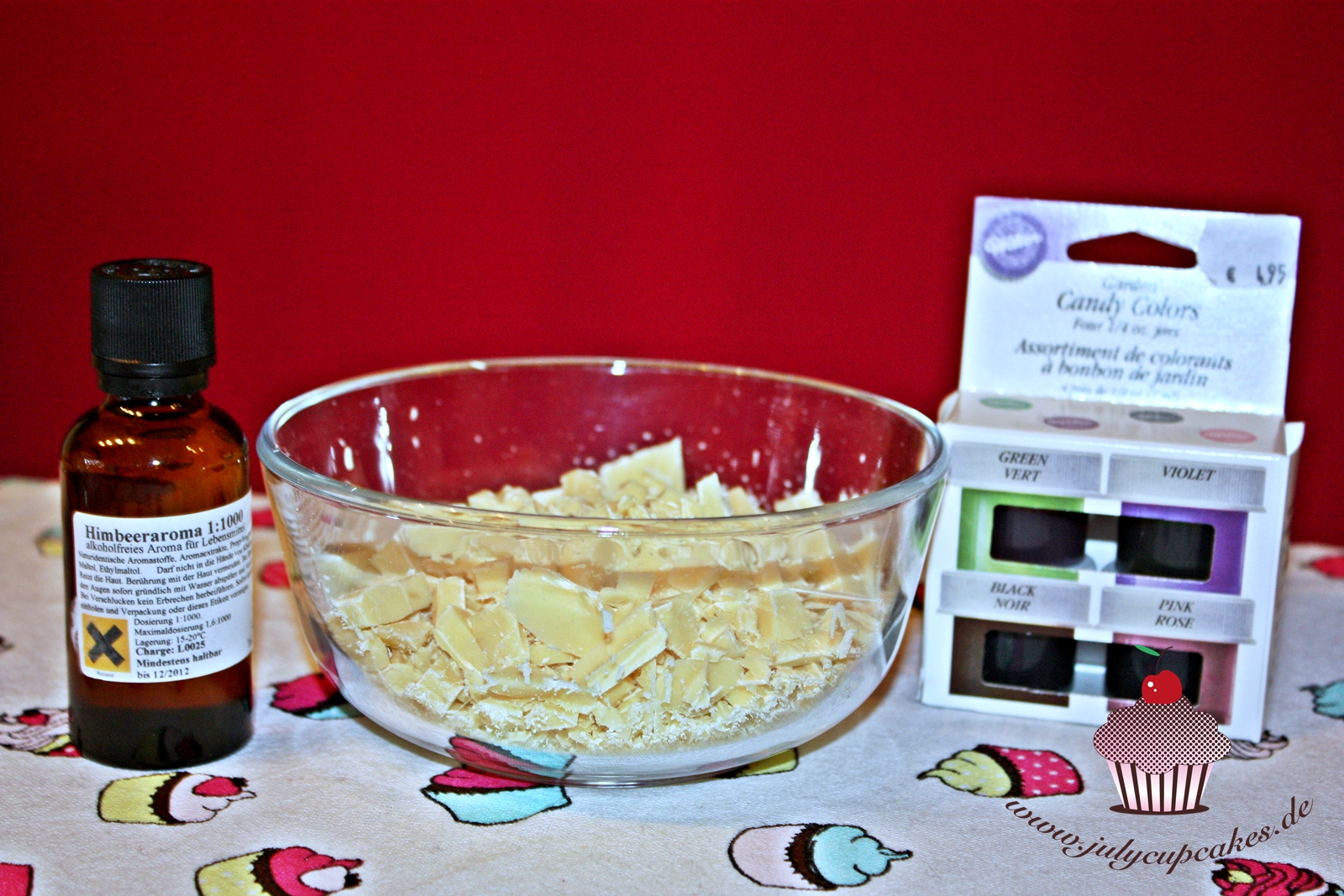 В это время нарубить мелко белый шоколад (можно и любой другой) и растопить вместе с PALMIN или растопить готовые Candy Melts. Добавить ароматизатор и краску. Перемешать до однородности.