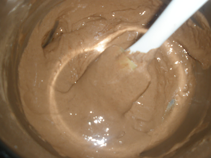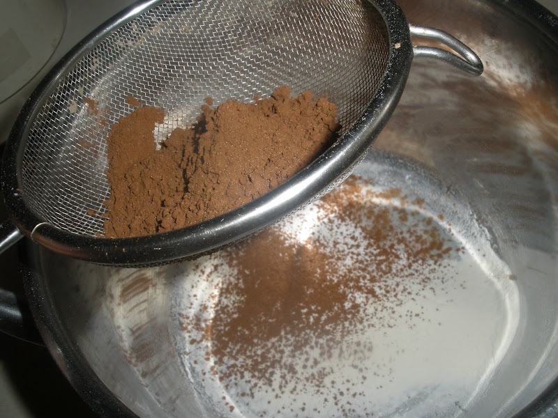 4. В сухие ингредиенты выложить желтковую массу и все очень тщательно размешать, до однородной консистенции. Главное - чтобы какао разошлось.