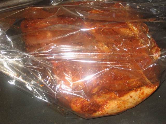 Затем наш приготовленный кусок мяса укладываем в пакет для запекания, плотно его завязываем. 1 час пусть просто полежит при комнатной температуре.