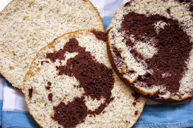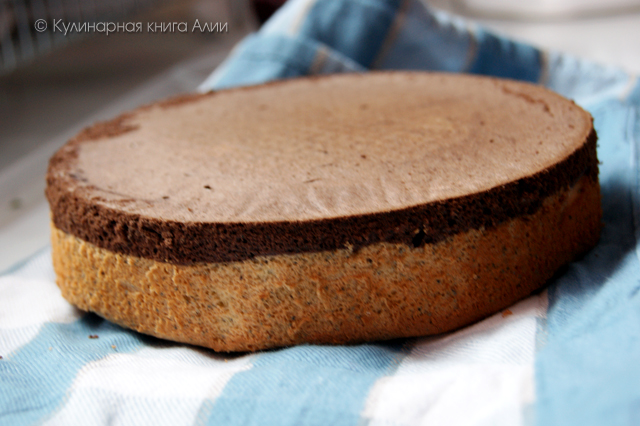 Т.к. мне было не охото делать два теста - белое и темное - я сделала одно белое тесто по рецепту, третью часть теста переложила в отдельную миску, добавила какао, перемешала. Положила темное тесто на дно формы...