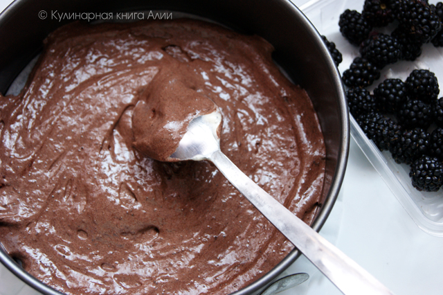 При сборке торта брала пакетик с застывшей ежевикой и переворачивала, пакетик убирала - очень удобно. Т.к. ежевики мало, она у меня не на весь корж
