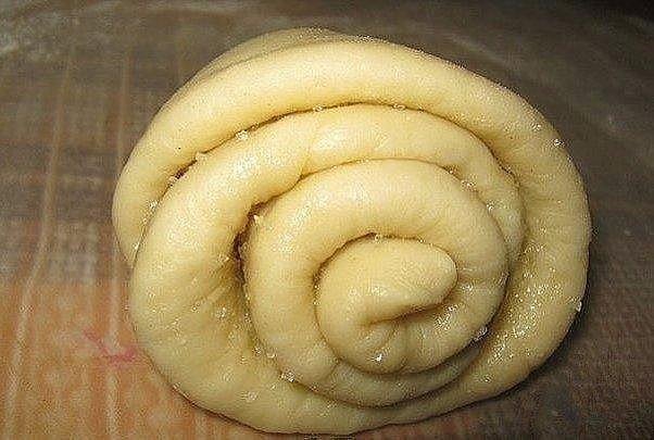 Готовое тесто разделить на шарики, величиной, как маленькое яйцо и раскатать их в тонкие лепешки. Каждую из них смазать растительным маслом, посыпать сахаром и сделать надсечку острым ножом от средины до края. С одной стороны лепешки поднять край и скатать по кругу в рулет-конус. Выложить плюшки на противень с бумагой для выпечки, дать расстояться минут 15-20 (можно смазать желтком) и поместить в духовку, разогретую до 190 градусов. Выпекать около 30 минут до готовности. При выпечке плюшки подымутся и разойдутся – получатся красивые завитушки. При подаче посыпать сахарной пудрой.