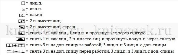Прибавления: накид, 1 лиц.п., маркер, 1 лиц.п., накид. В след. кругу накиды вязать лиц. скрещ. петлями.