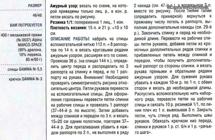 Дневник Ажурный пуловер спицами | Lazar26 - Дневник Lazar26 |