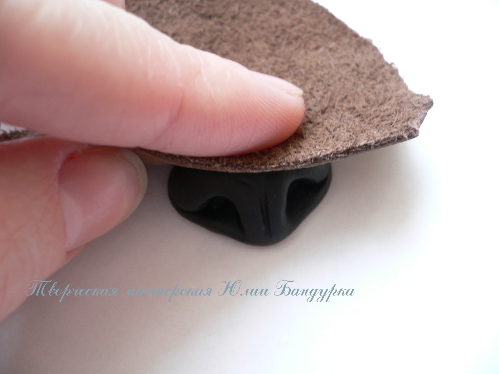 Кусочком кожи придаем фактуру живого носа. Отпечаток получается сделать только если использовалась глина FIMO soft .