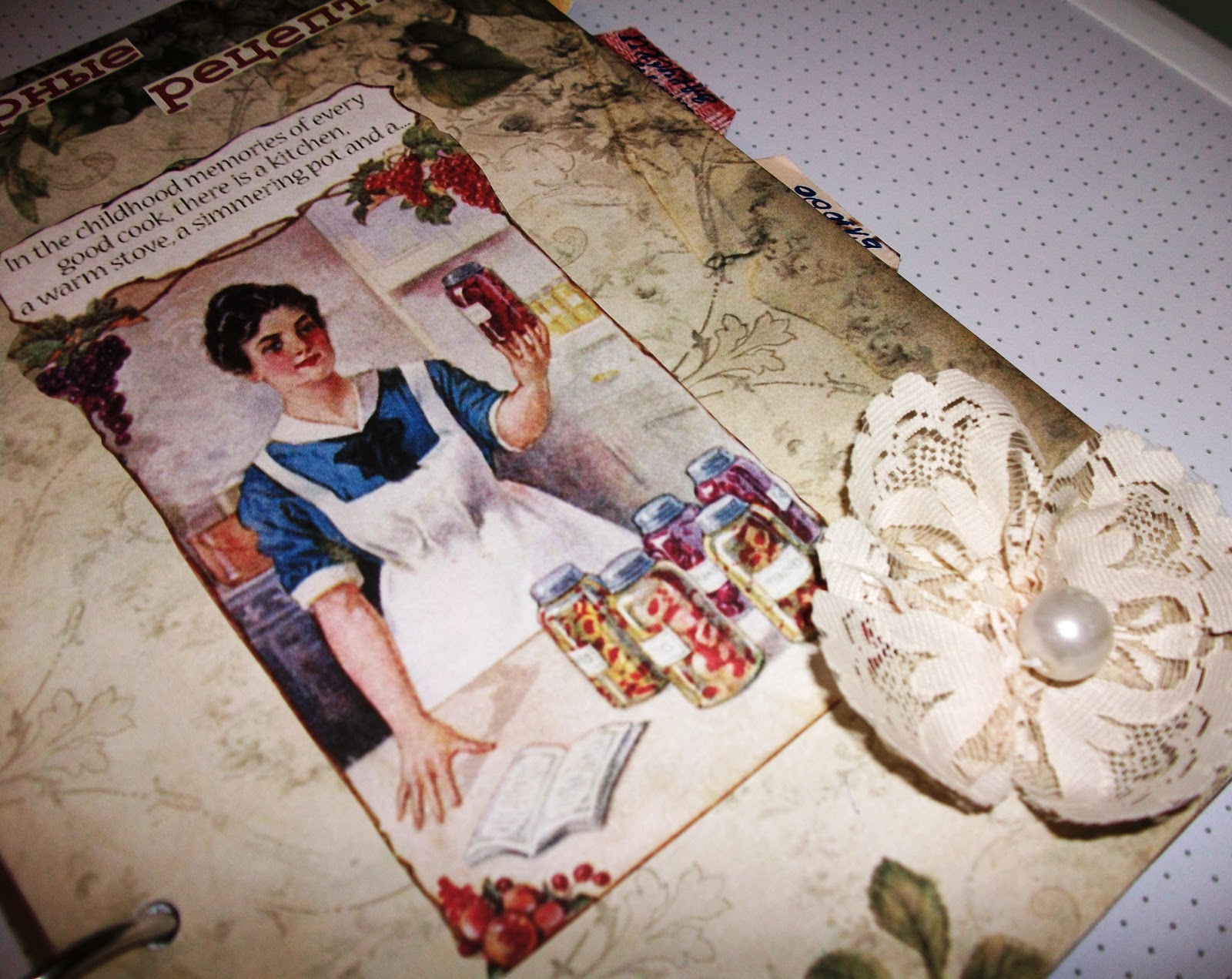 Единственно украшающий элемент на обложке - это цветок из кружева и бусинка, более мне ничего не захотелось добавлять.