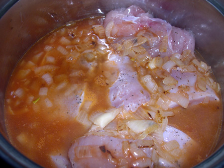 Подливой залить рулетики, поставить на огонь. Дать закипеть, сделать огонь на самое малое, тушить в течение часа.