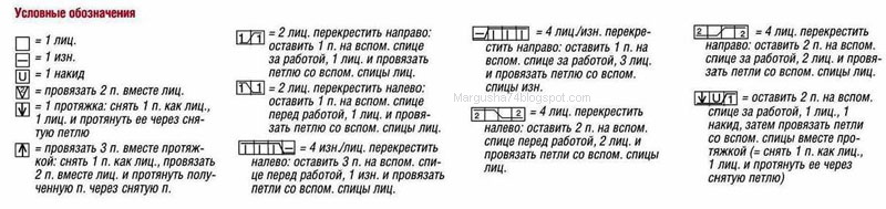 Особые убавления: в начале р. после кром. 1 лиц. и провязать 2 п. вместе лиц., в конце р. выполнить 1 протяжку (= см. условные обозначения), 1 лиц. и кром.