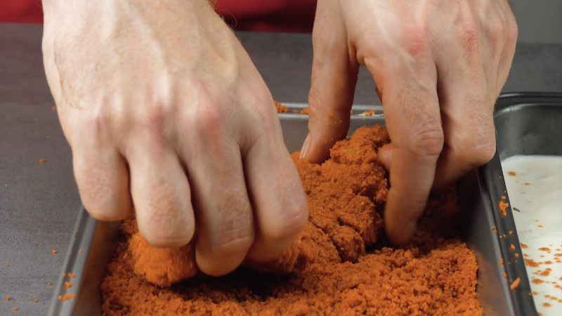 5.) Чипсы мелко раскрошим и насыпем в большую неглубокую емкость - они нам нужны для панировки.