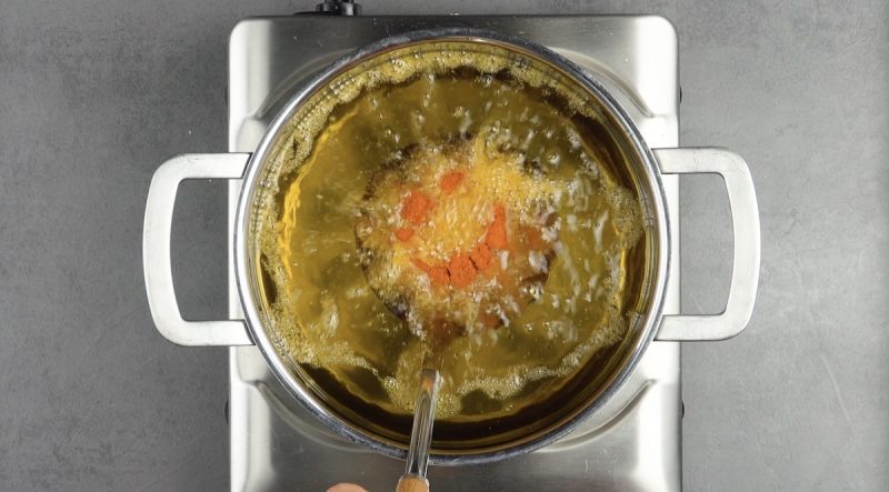 8.) Нагреваем масло в кастрюльке и жарим курочку в кипящем масле до готовности.