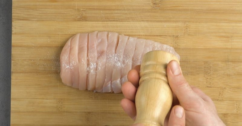 1.) В каждой грудке делаем несколько глубоких параллельных надрезов, но не разрезаем мясо до конца.