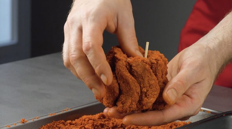 6.) Маринованные грудки обваляем в картофельных крошках.