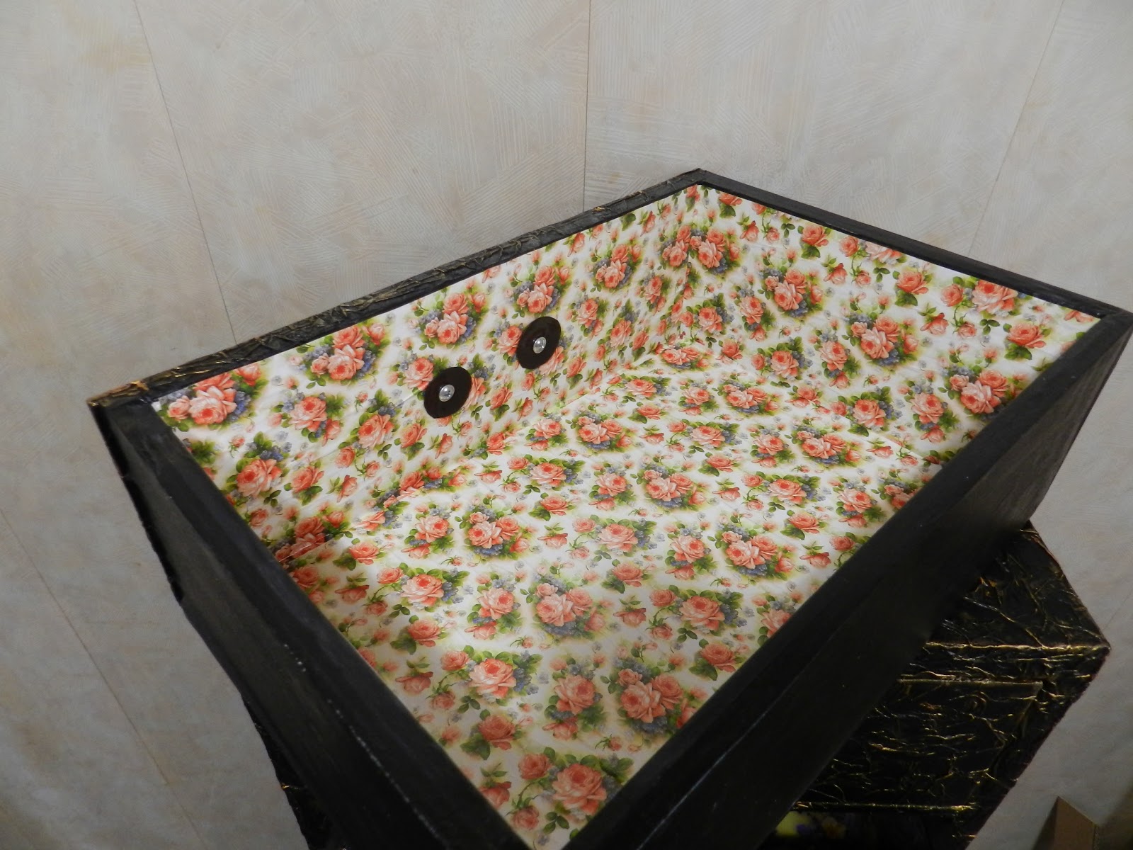 Для лучшего скольжения дно оклеила самоклейкой (куски раздобыла у рекламщиков)