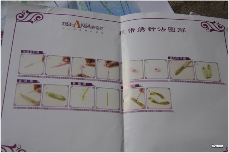 У меня уже есть небольшой опыт вышивки лентами, но даже если его и не было бы, то разобраться проще простого, схема дана очень наглядная.