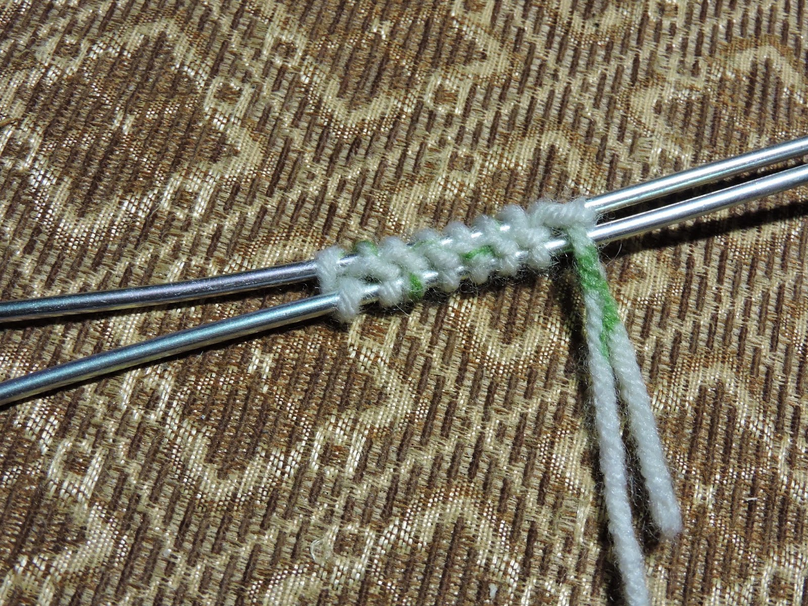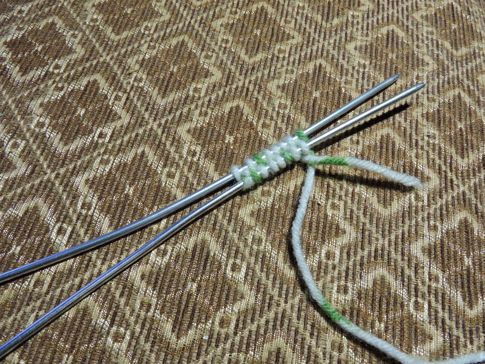 Сделать набор петель по методу Judy's Magic Cast On (Starting Toe Up Socks)-набор петель сразу на две спицы. На каждую спицу набрать по 8 петель.