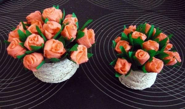 Чтобы розочки лучше держались в корзинке немного капните клея между ними) Вот какие корзинки у нас получились)