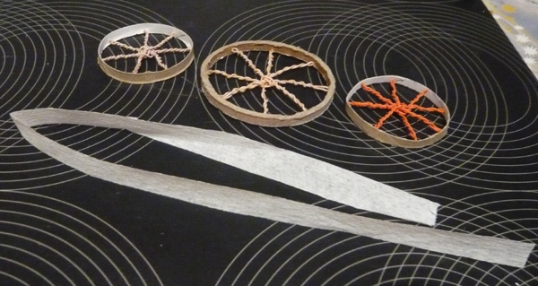 Нарежем рулончик и бобину на кольца шириной 5-6 мм(в принципе я резала на глаз)