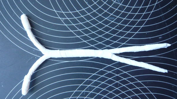 Соединяем наши части в единое целое при помощи всё тойже проволоки.Если она тонкая то дублируем её несколько раз,так основная нагрузка производится на раму.Так же обернём её бумагой.