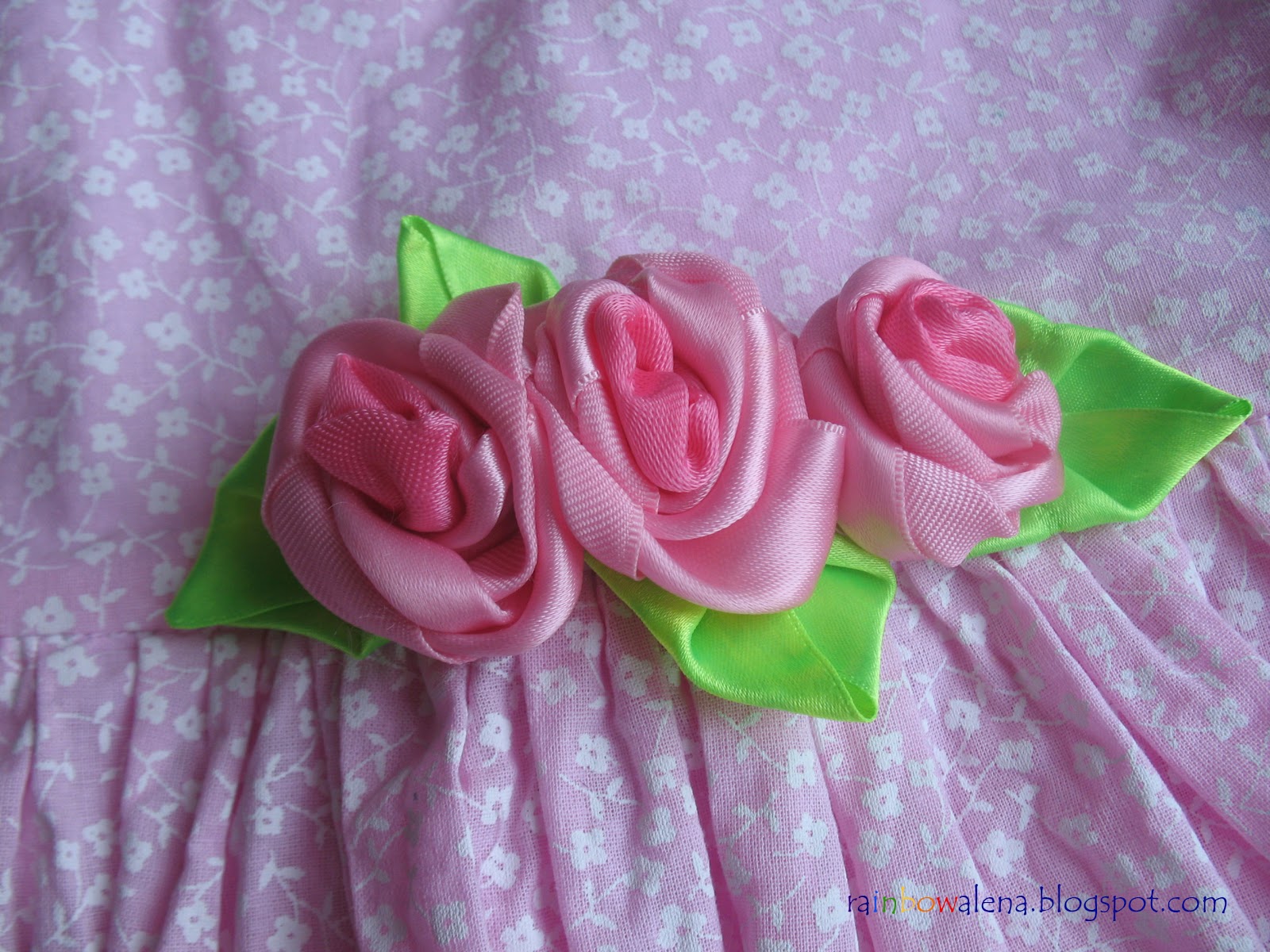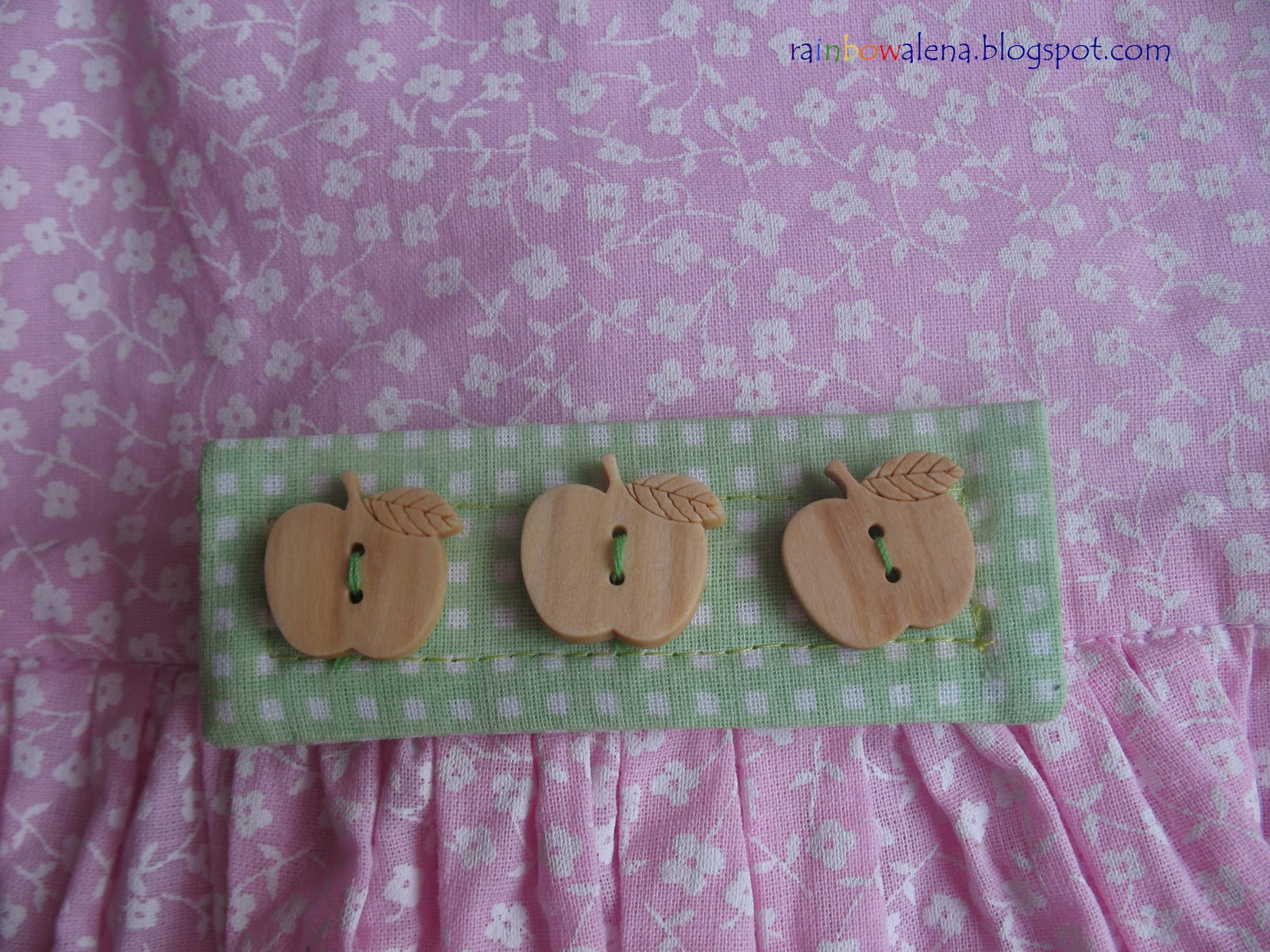 И самое интересное - розочки крепятся на липучку (а точнее пришиты к ленте велкро, к той части которая с крючками). Меняем розочки на яблочки -получаем повседневное летнее платье.