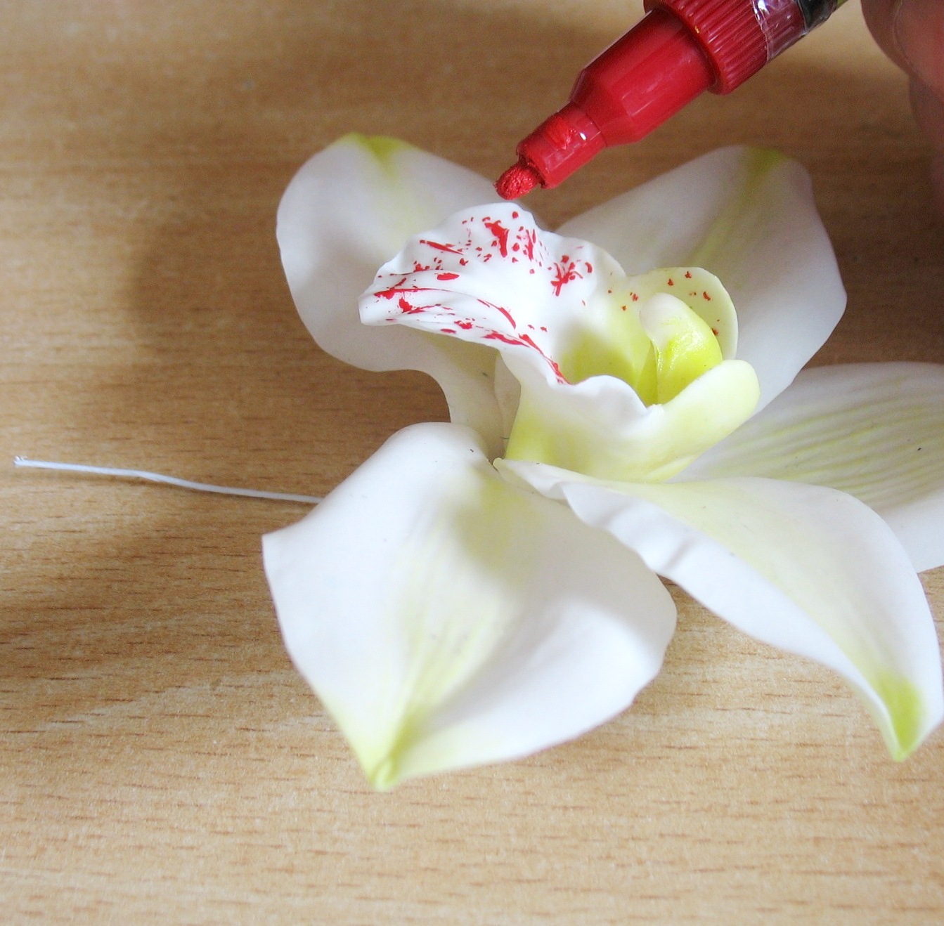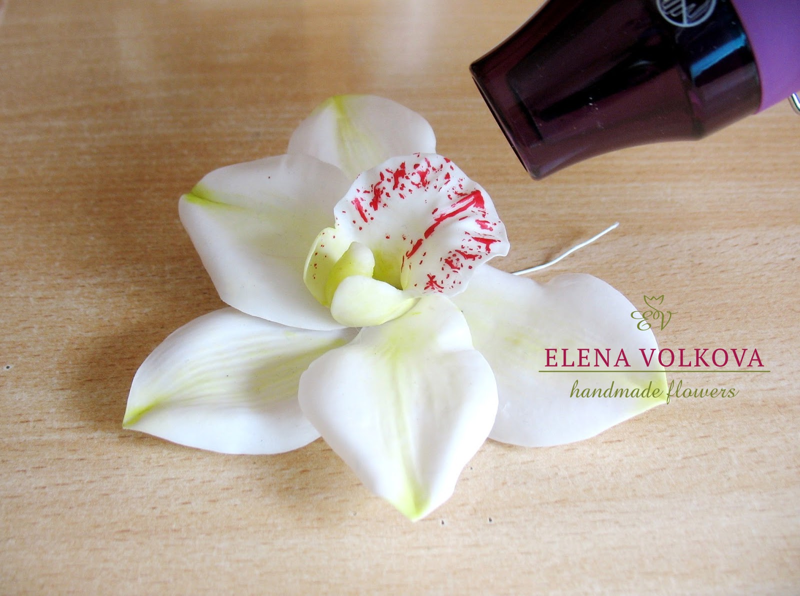 Первый вариант - цимбидиум подлежит доработке, а вот второй вариант, уже готов. На снимке хорошо видна бархатистость:) Уверена, если набить руку в нанесении более достоверного рисунка на губе этой орхидеи, то в сочетании с бархатистостью, результат будет не отличим от живого цветка:)